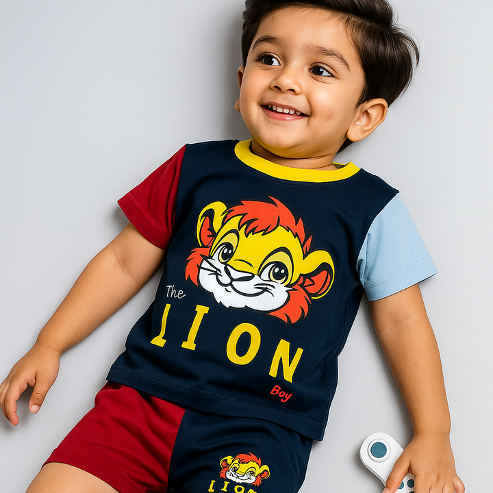 Kids Cotton T-Shirt & Short Set Lion Navy Blue - Sunshine