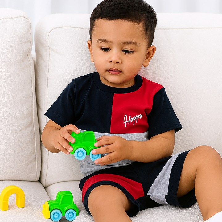 Kids Cotton T-Shirt & Short Set Red & Black - Sunshine
