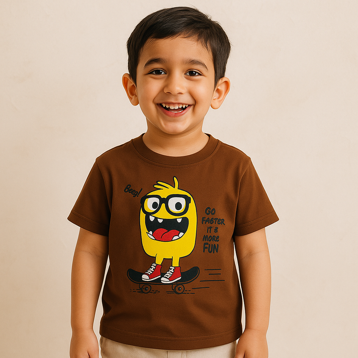 Kids Cotton T-Shirt Skateboard Brown - Mini Champ