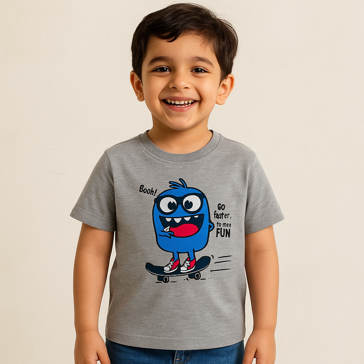 Kids Cotton T-Shirt Skateboard Grey - Mini Champ
