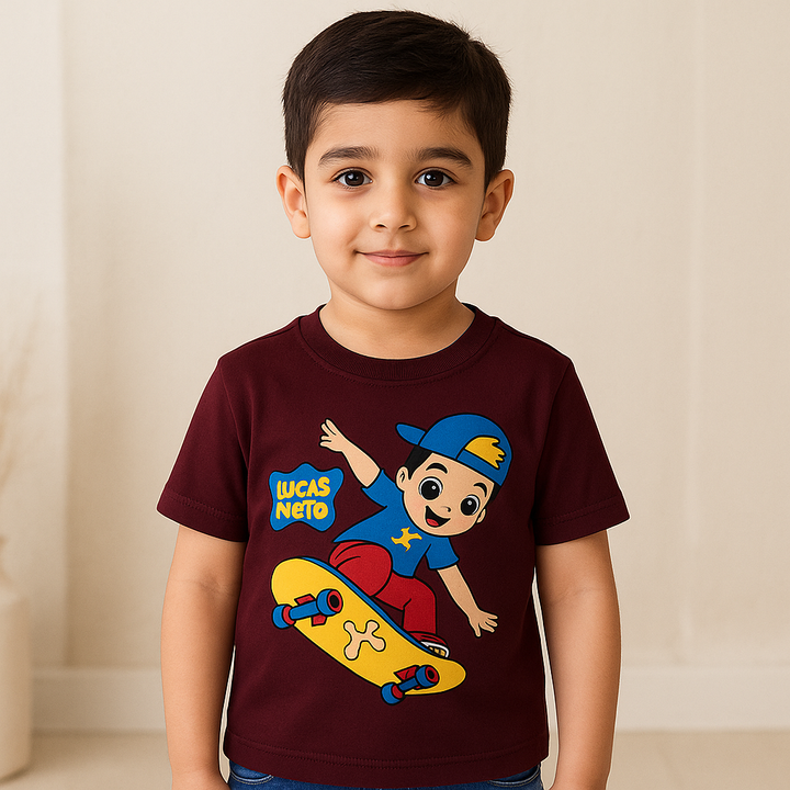 Kids Cotton T-Shirt Skating Maroon - Mini Champ