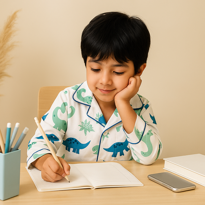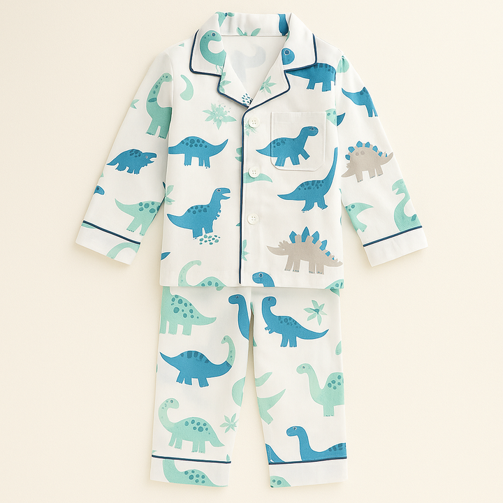 Kids Full-Sleeves Cotton Night Suit Dinosaurs White & Blue - Mini Charm