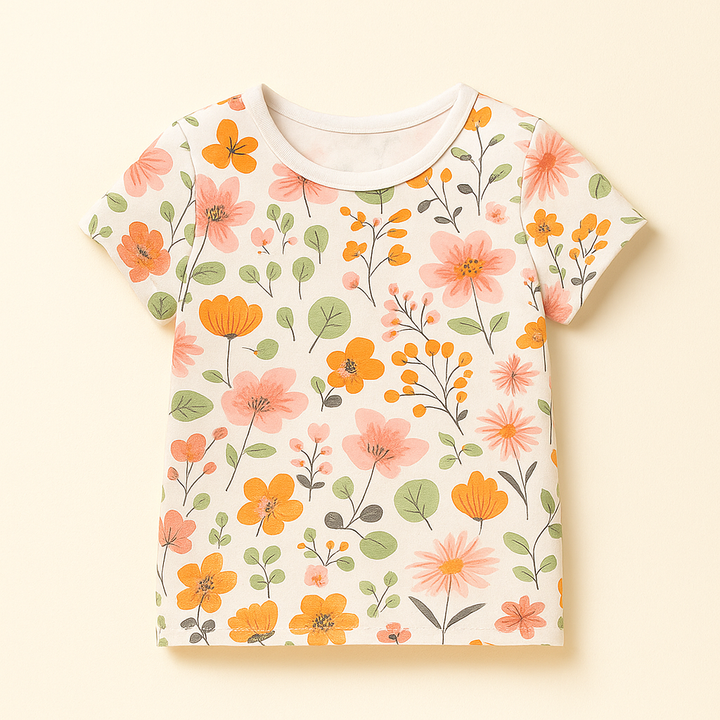 Kids Half-Sleeves T-Shirt Flowers White - Mini Charm