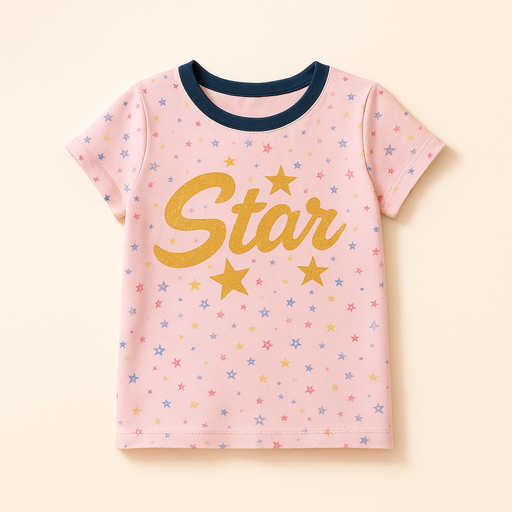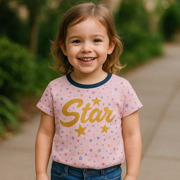 Kids Half-Sleeves T-Shirt Star Baby Pink - Mini Charm
