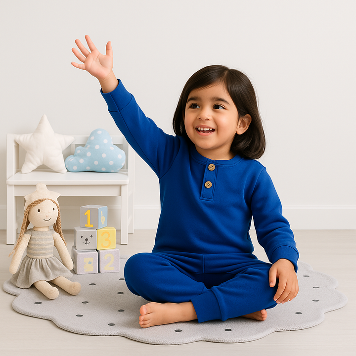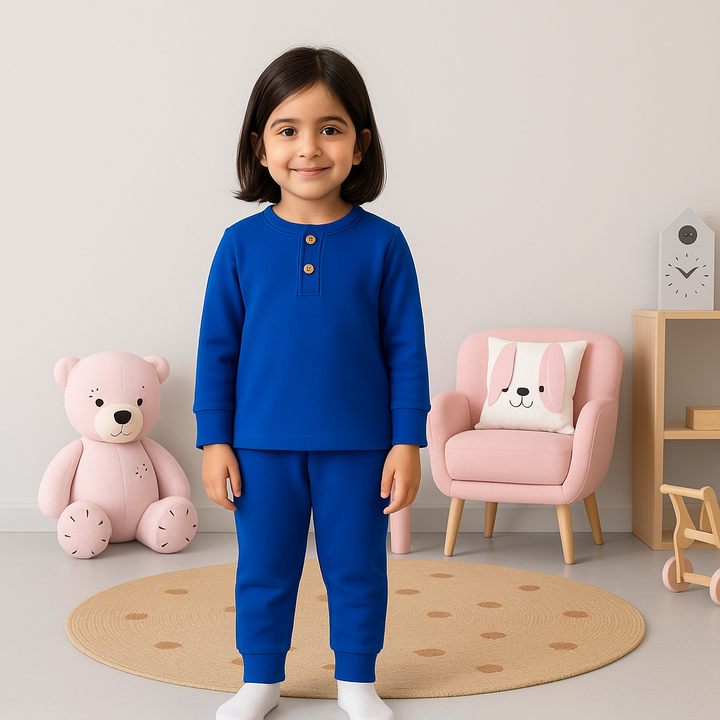 - Color & Print: Royal blue solid; classic lounge look.