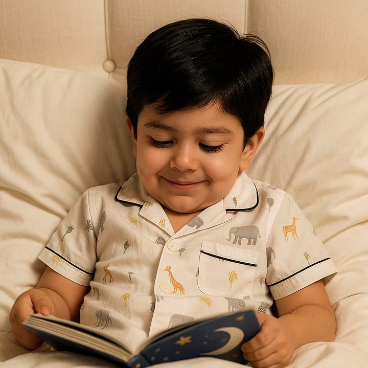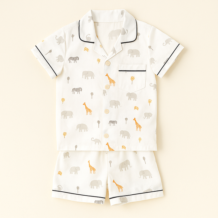 Kids Night Suit With Shorts Elephant White - Mini Charm