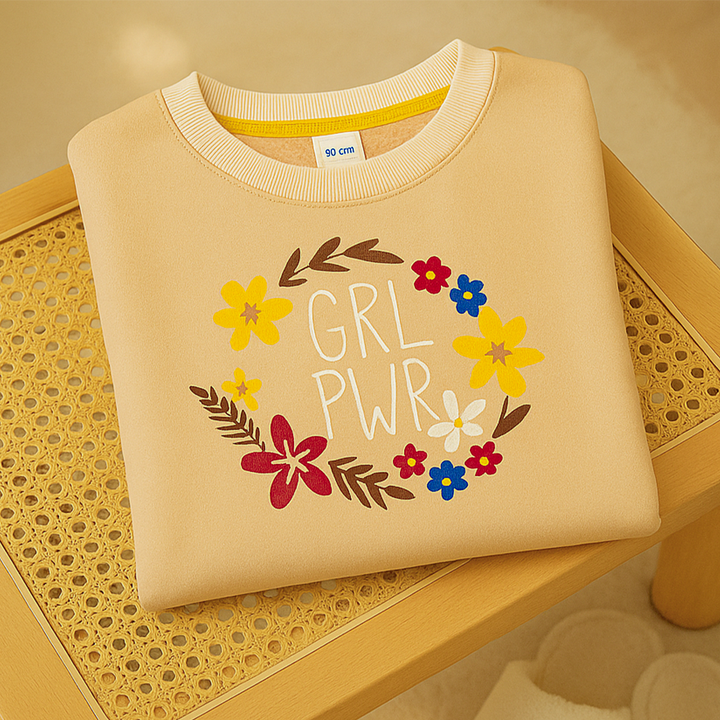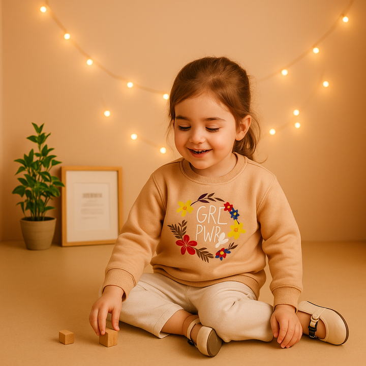 Kids Printed Sweatshirt Girl Power Peach - Mini Charm