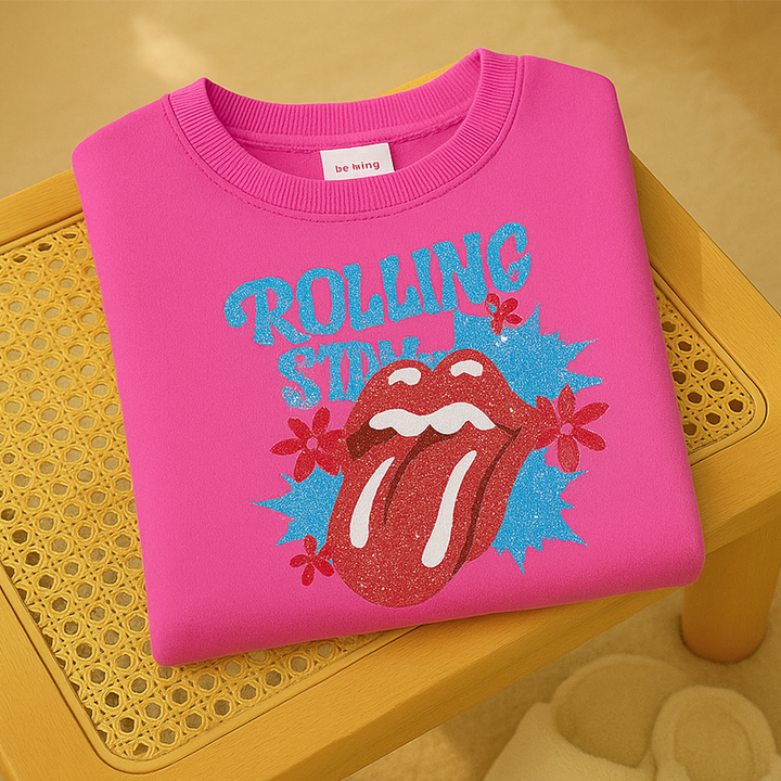 Kids Printed Sweatshirt Rolling Stones Pink - Mini Charm