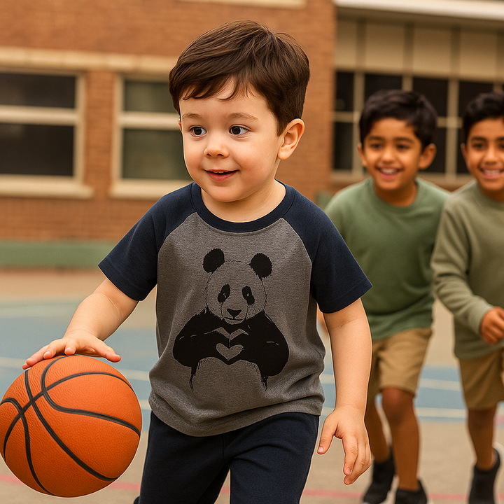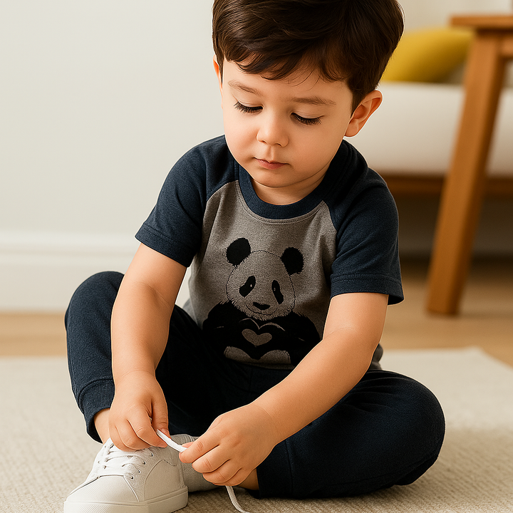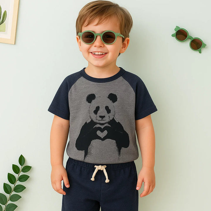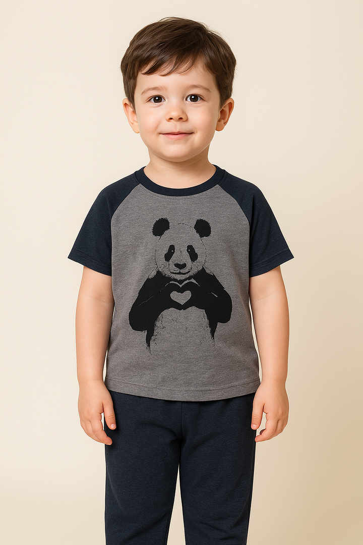 Kids Raglan Half Sleeves Printed Pajama Set Panda Grey & Charcoal - Sunshine