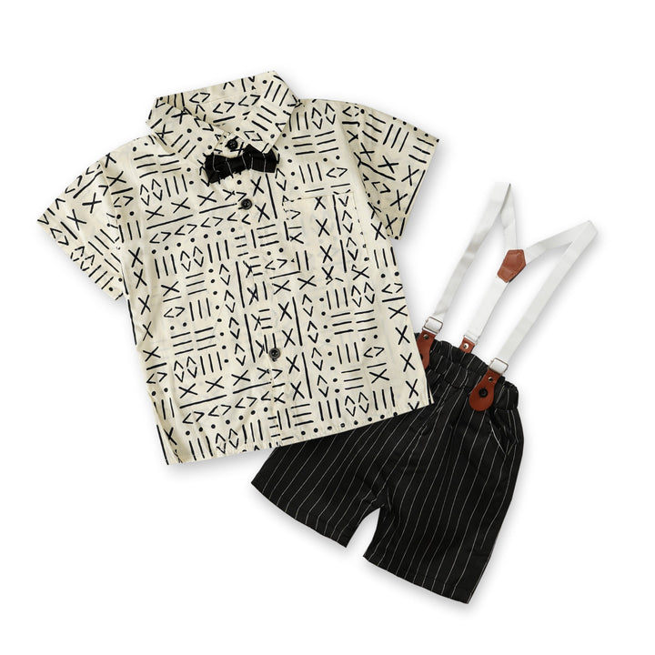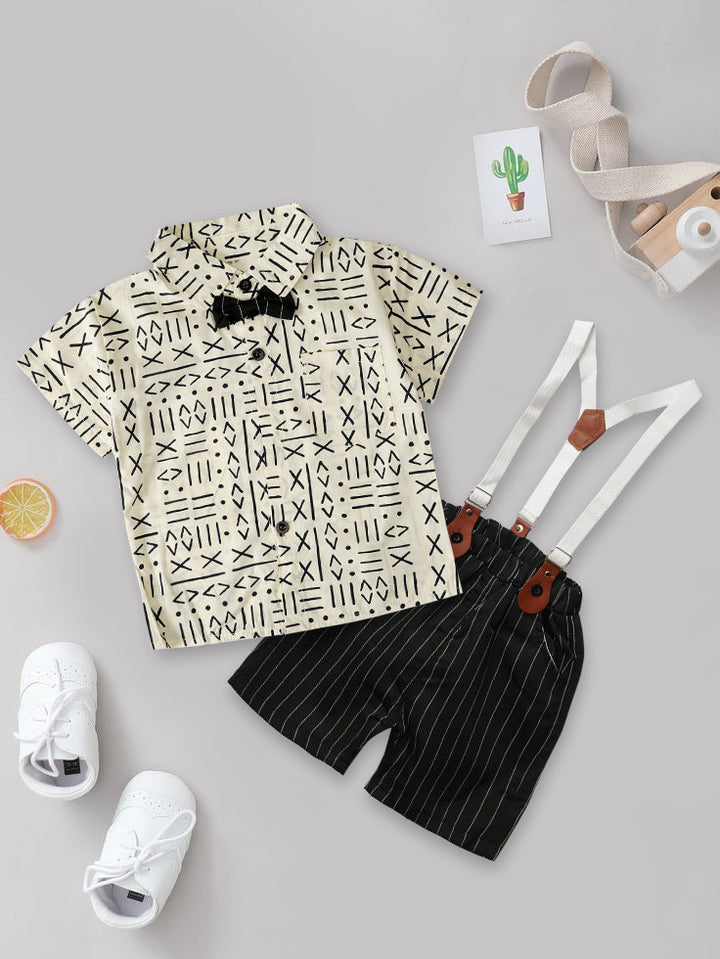 Kids Shirt & Suspender Short Set Roman Off White - Sunshine