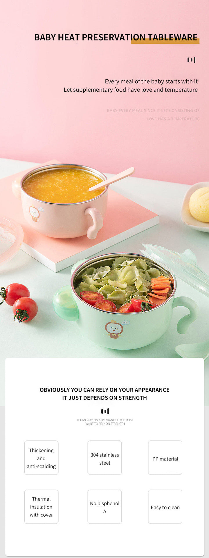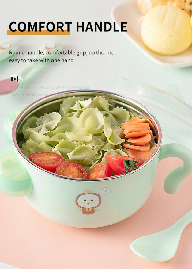 Kids Stainless Steel Insulated Dinner Bowl With Spoon Green - Sunshine