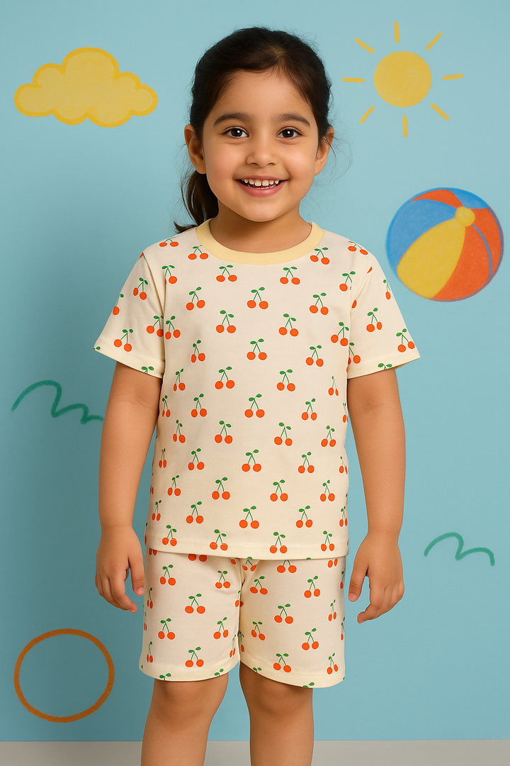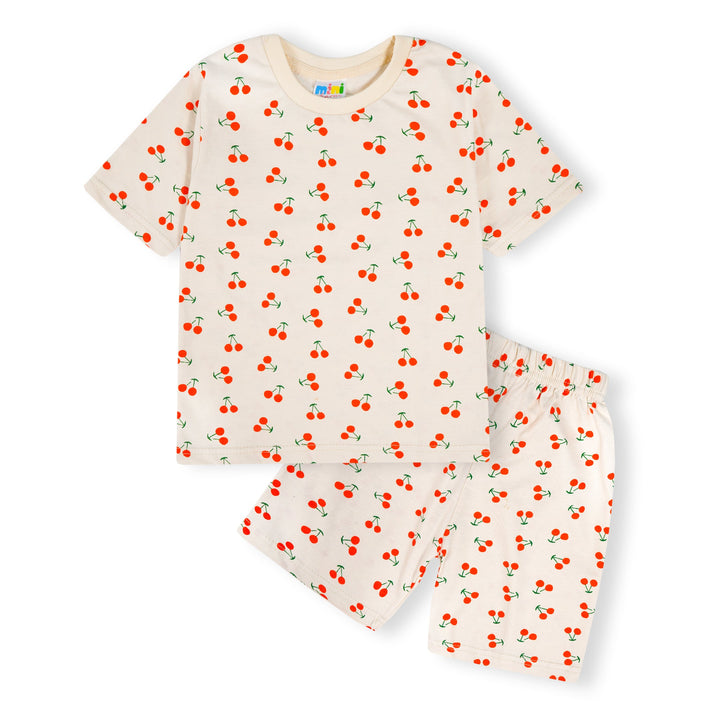 Kids T-Shirt & Short Set Cherry Off White - Mini Charm