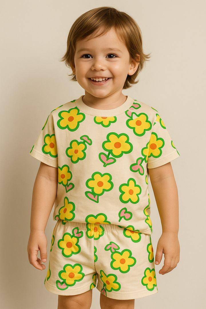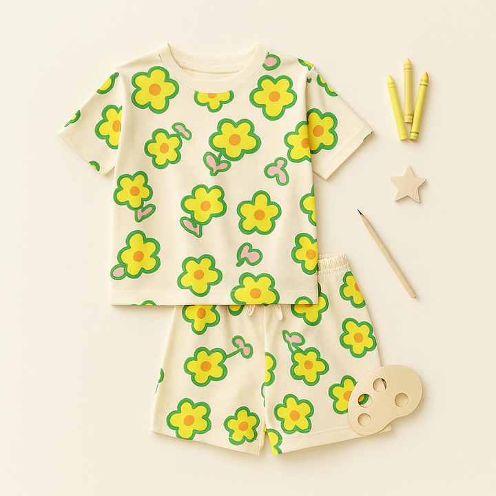 Kids T-shirt & Short Set Flower Pink & Peach - Mini Charm