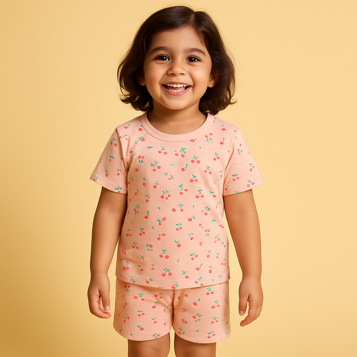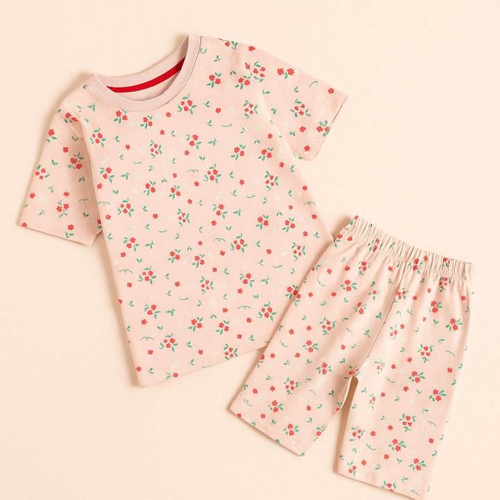 Kids T-Shirt & Short Set Flowers Pink - Mini Charm