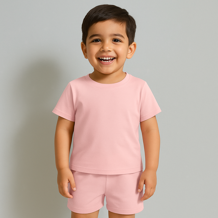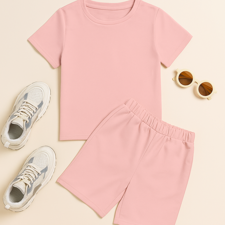 Kids T-Shirt & Short Set Plain Pink - Mini Charm