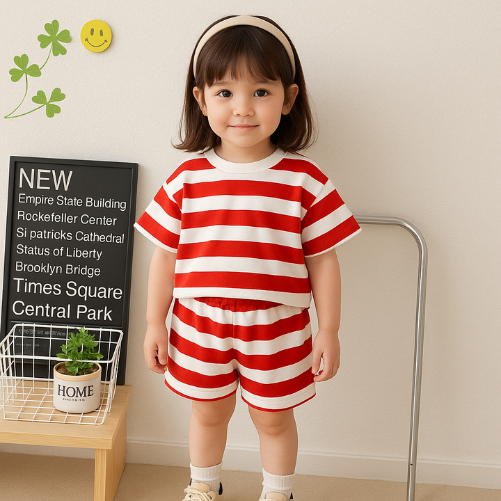 Kids T-Shirt & Short Set Wide Stripes Red - Mini Charm