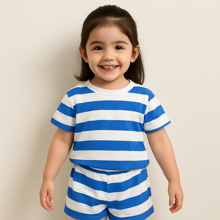 Kids T-Shirt & Short Set Wide Stripes Royal Blue - Mini Charm