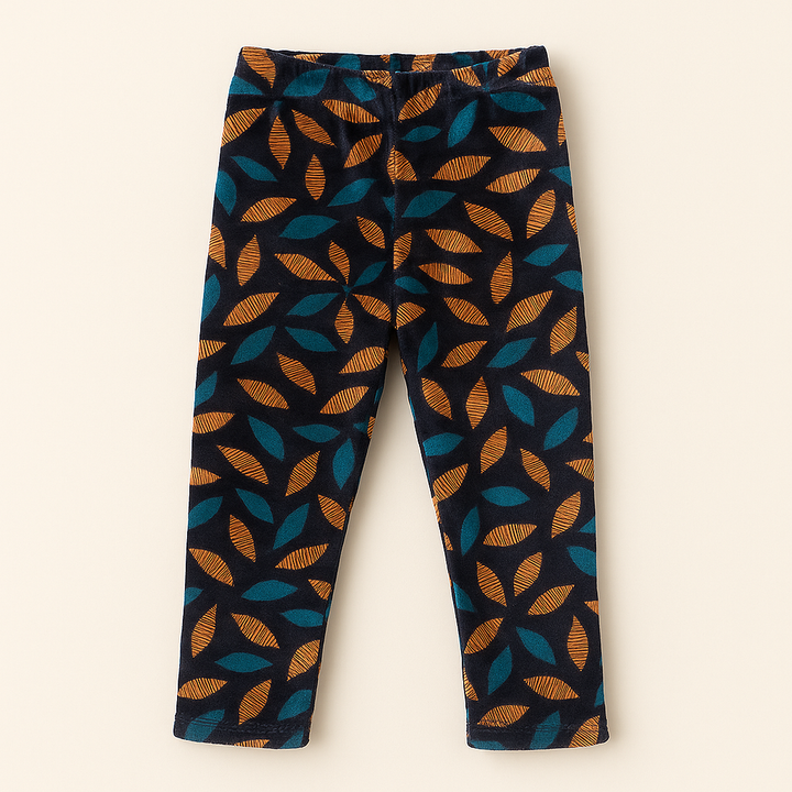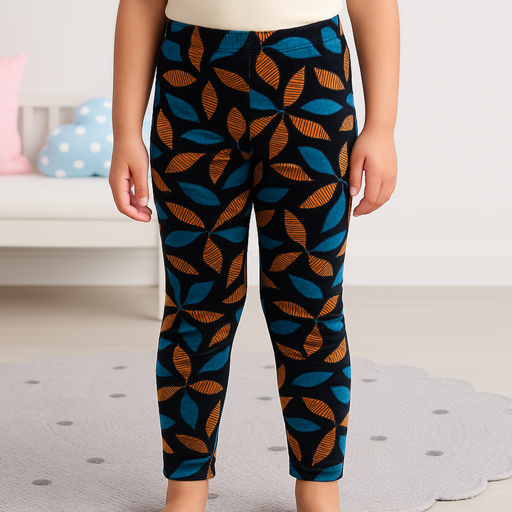 Kids Velvet Tights Flower Green & Brown - Sunshine