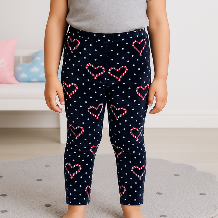 Kids Velvet Fleece Tights Hearts Polka Dots - Sunshine