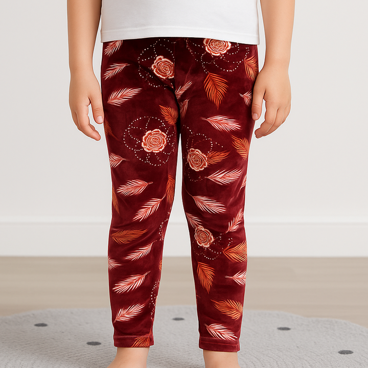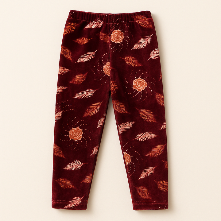 Kids Velvet Tights Leaves Maroon - Sunshine