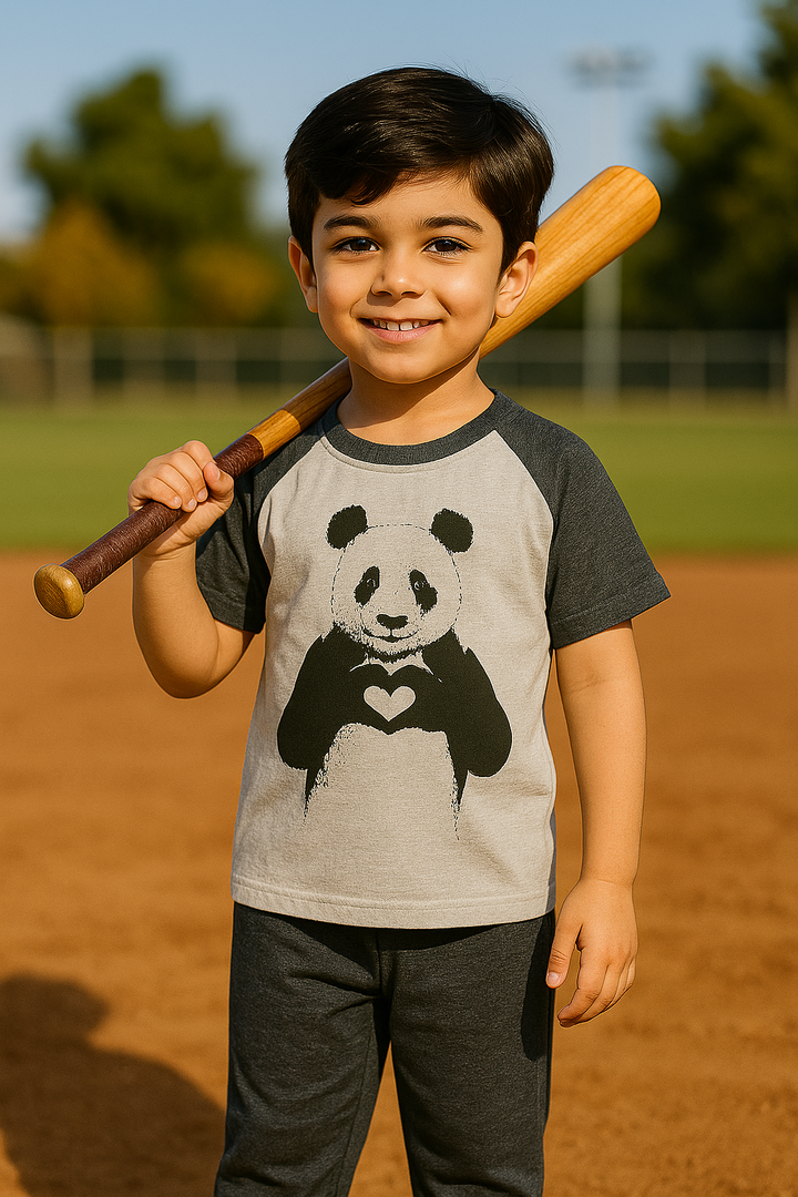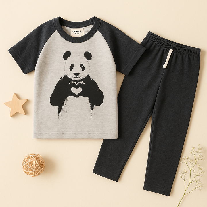 Kids Raglan Half Sleeves Printed Pajama Set Panda Grey & Charcoal - Mini Charm